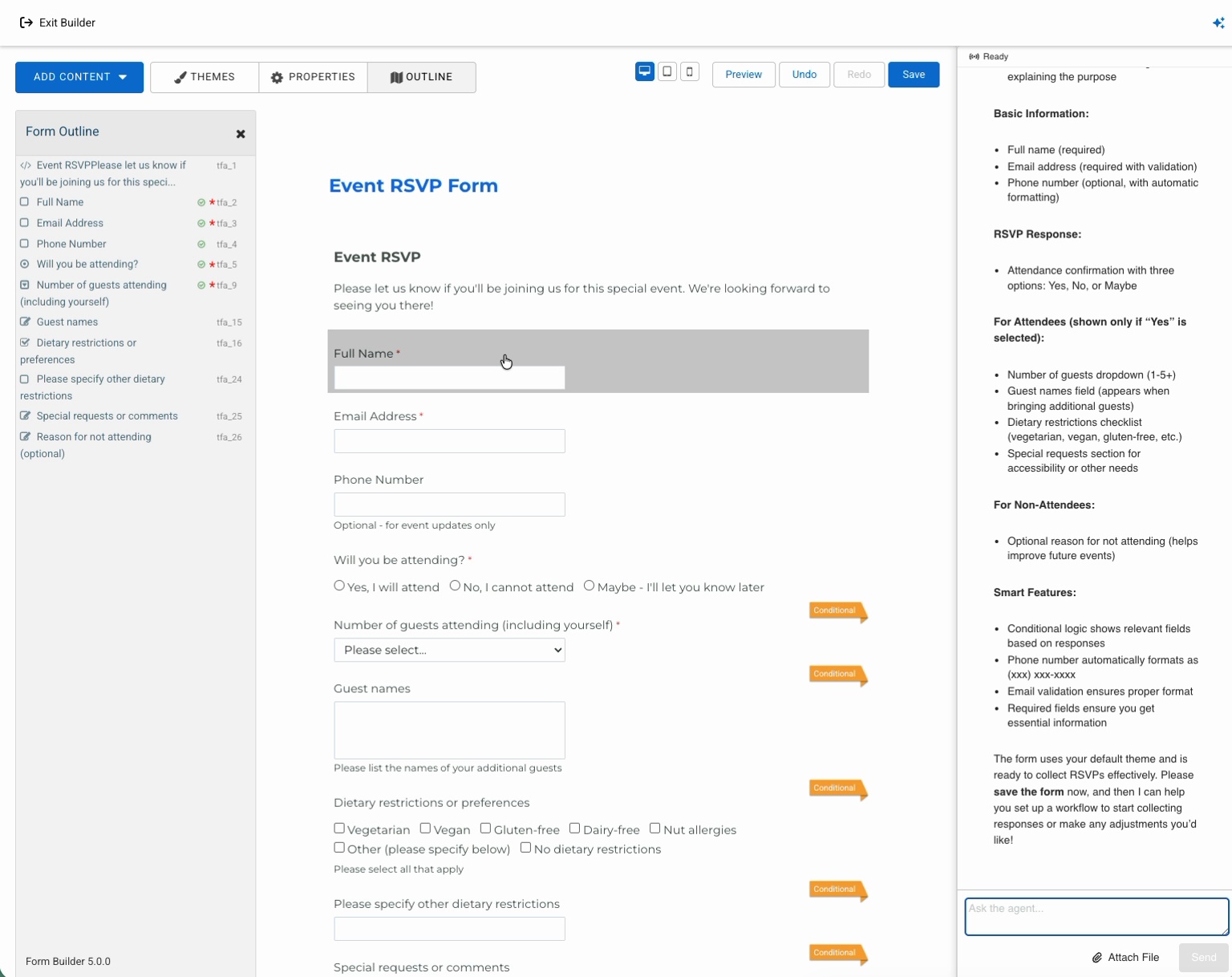 Try it for yourself! Ask Fai: “Create an event RSVP form for me.”